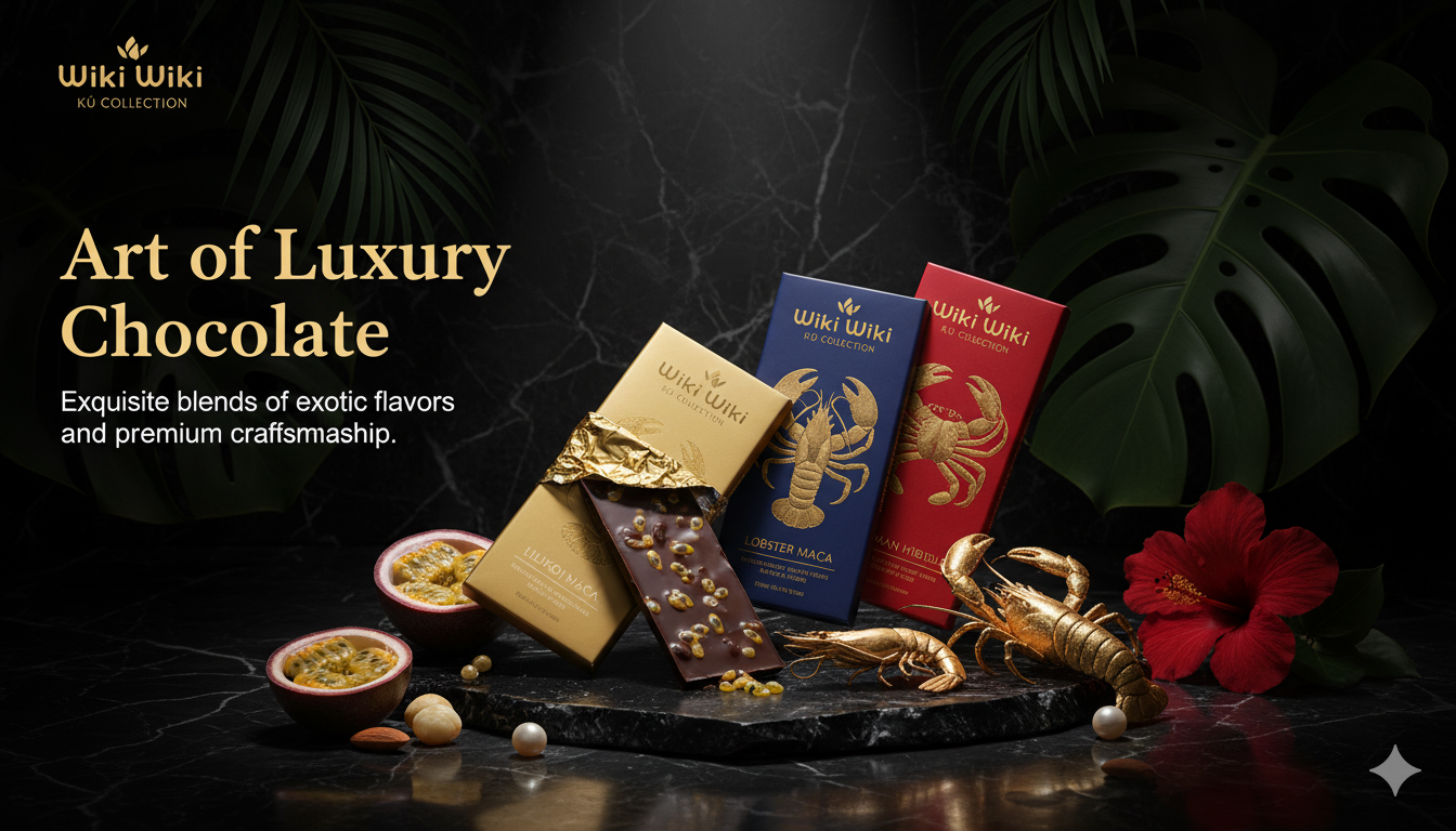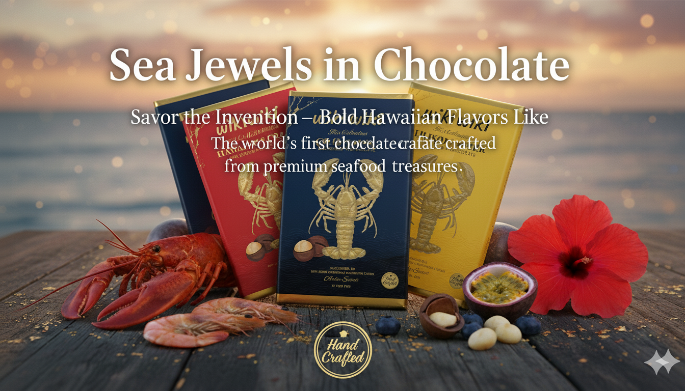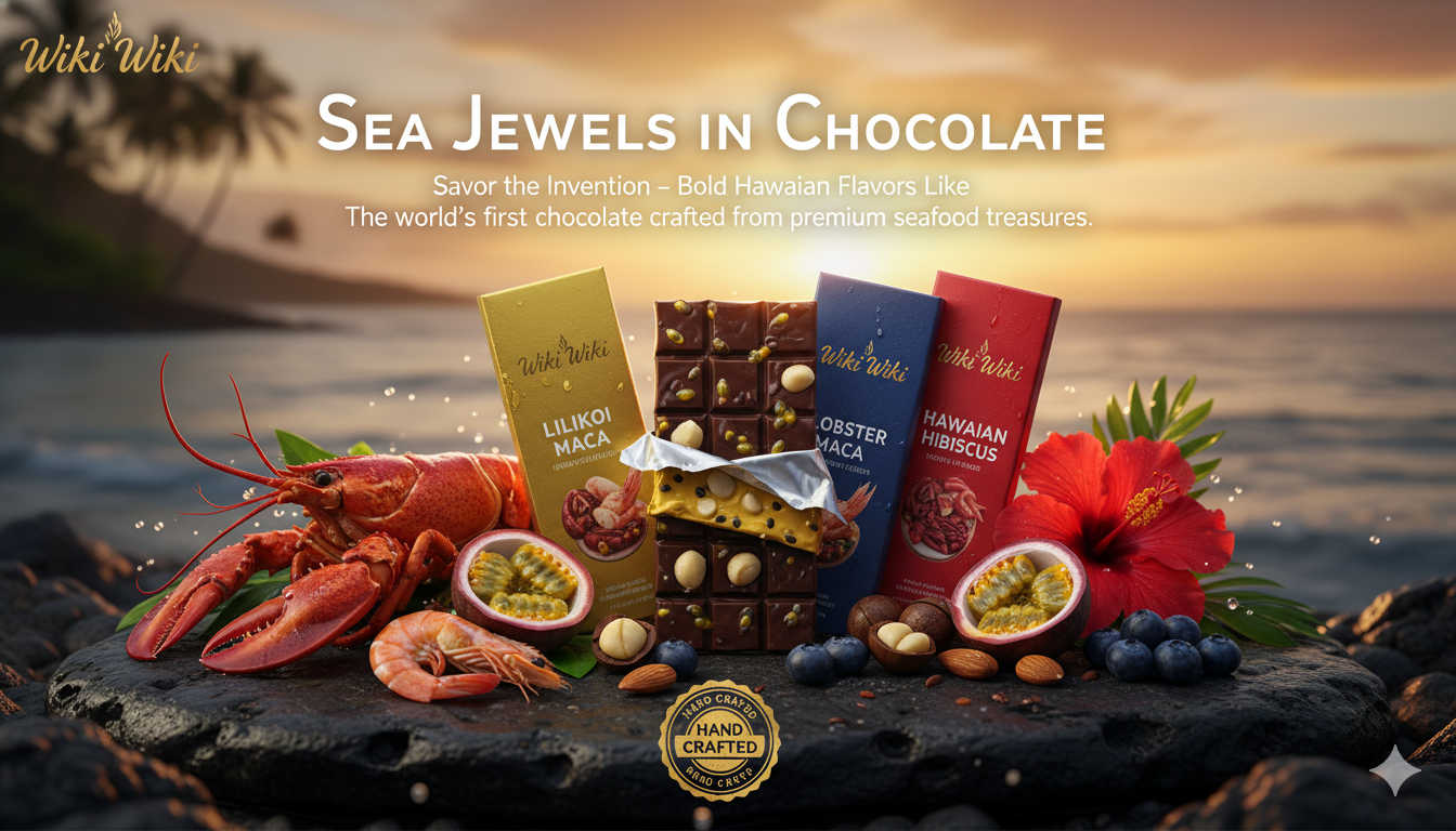 At WikiWiki, every chocolate bar tells a bold story — one that blends the finest chocolate with real ocean treasures. Inside each bar, you’ll taste authentic seafood pieces, not just flavoring. It’s a daring harmony of land and sea, crafted to surprise your senses and take you on a journey through the spirit of Hawaii. Taste it, feel it, and discover something truly unforgettable